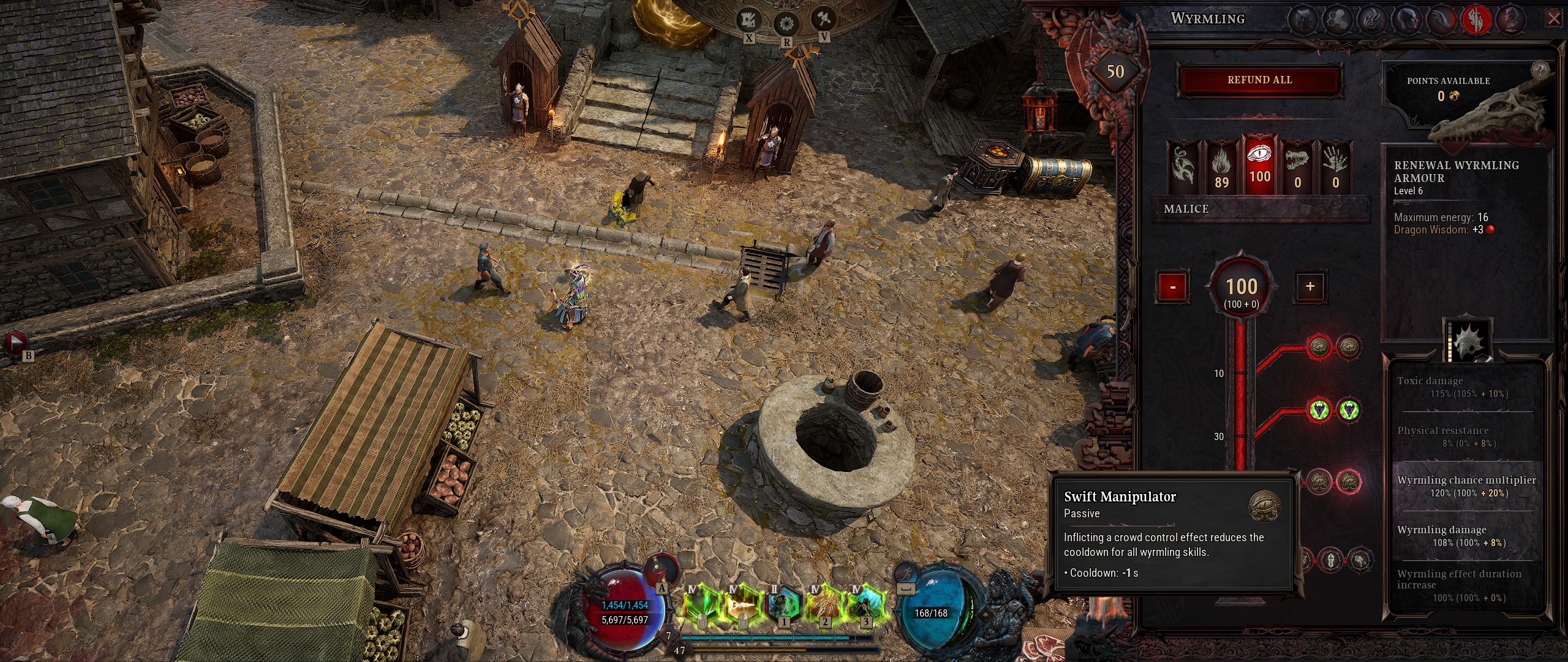 Changer de Wyrmling peut être intéressant, car, de base, ils offrent tous passivement des bonus différents et donnent accès à des compétences de Wyrmling différentes. De plus, si une classe a, par défaut, accès à des compétences infligeant des dégâts physiques et d'autres des dégâts de l'élément associée à la classe (poison, dans mon cas), renforcer suffisamment une compétence la fait automatiquement entrer en Symbiose, c'est-à-dire qu'elle récupère en plus l'élément associé au Wyrmling (l'apparence et le type de dégâts que prend au final la compétence dépend de l'élément qui lui apporte le plus important bonus : si on a une compétence poison/foudre, qu'on a un bonus de dégâts 120% en foudre et 107% en poison, la compétence fera des dégâts de foudre en profitant du bonus aux dégâts de foudre).