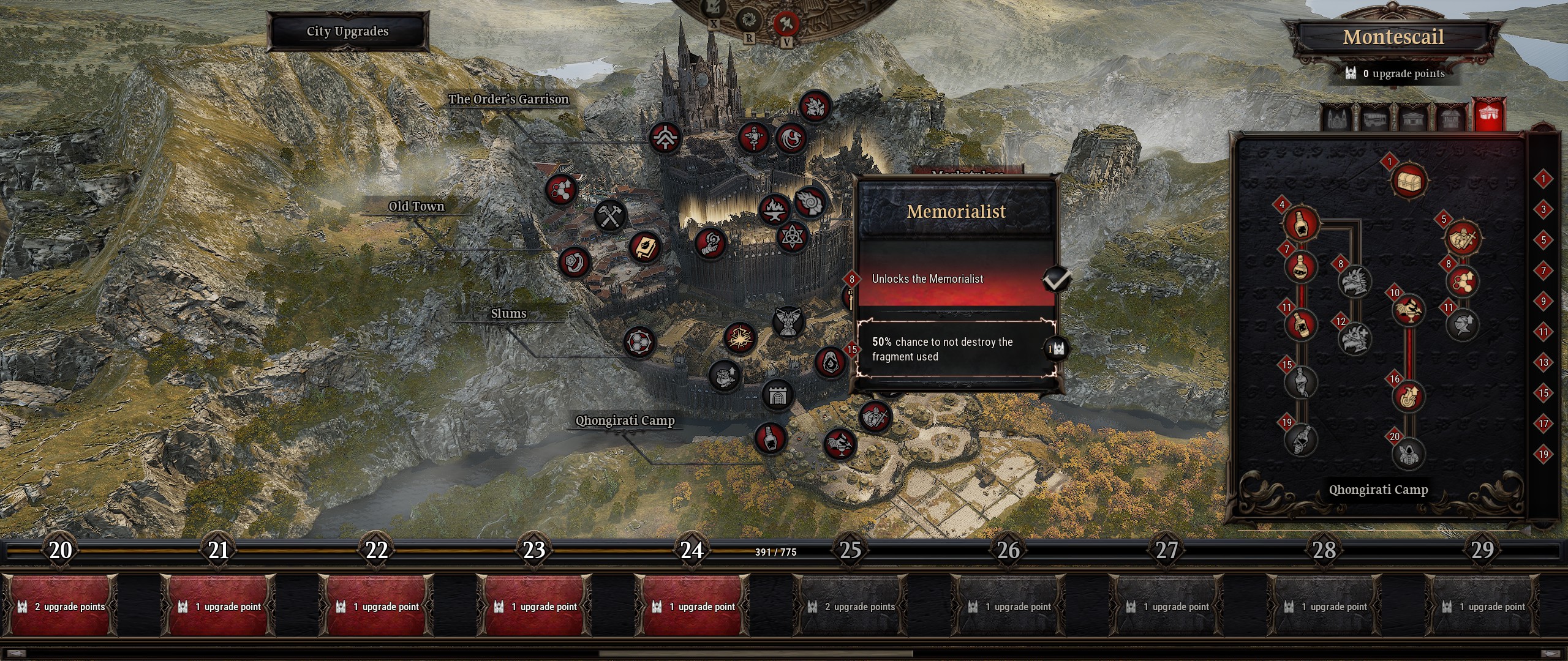Il y a cependant quelques petits bémols par rapport aux services de la ville. Le moins grave est que certains de ces services sont débloqués bien trop tôt par rapport à quand on peut effectivement les utiliser. Ensuite vient le fait qu'une fois la campagne terminée et toutes les zones explorées, la progression de la ville devient quasiment nulle. La solution trouvée par les joueurs est le multi, car tous les joueurs contribuent à la ville de l'hôte, multipliant l'expérience des reliques par le nombre de joueurs, ou alors de refaire des personnages pour récupérer à nouveau les reliques. Il aurait été plus intéressant de mieux équilibrer l'importance des différences sources d'expérience pour la ville (ou faire en sorte que tous les ennemis tués contribuent, avec une importance plus ou moins importante).