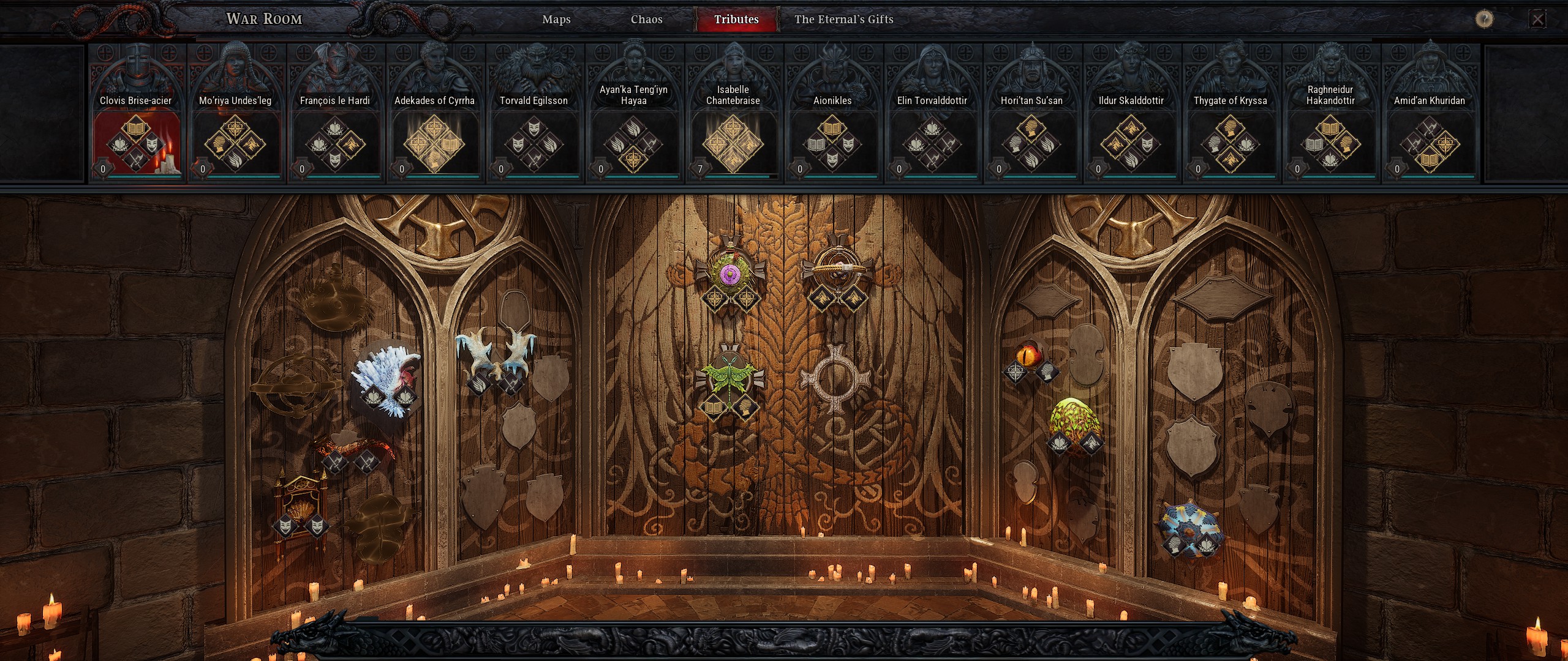 La sélection de l'Ancêtre à faire progresser se fait d'un simple clic. L'activation se fait en interagissant avec des trophées obtenus sur les boss principaux de la campagne et lors de certaines missions des Cartes. On peut initialement sélecitonner deux trophées parmi ceux obtenus et ce nombre peut progresser à quatre via les Cartes. Chaque trophée présente 2 symboles et chaque Ancêtre demande d'avoir 4 symboles précis parmi tous ceux des trophées sélectionnés pour être activé. Avec deux trophées, un seul peut être activé. En progressant, il devient possible d'en activer plusieurs à la fois.